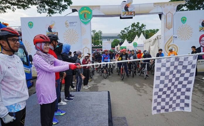 Tepat pukul 06.45 Wita, Sekretaris Daerah Provinsi Kaltim Sri Wahyuni melepas peserta Gowes Fun Ride 2025 di Halaman Parkir Gelora Kadrie Oening Sempaja Samarinda.