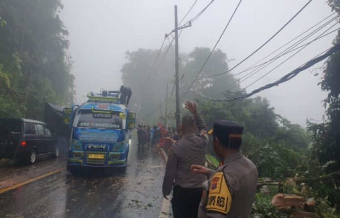 Tanah Karo, Satu Indonesia – Polisi bersinergi dengan TNI untuk melakukan evakuasi dan memastikan upaya pembersihan pohon tumbang yang membuat akses jalan ke Brastagi, Sumatera Utara (Sumut).