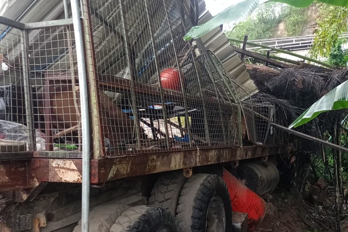 Hujan yang lebat menyebabkan tanah longsor di belakang bangunan, dan membuat pohon tumbang hingga menimpa bagian belakang bangunan tersebut, sehingga korban terjebak di bawah reruntuhan.