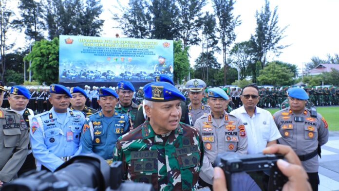 “Selalu waspada dan sigap dalam menghadapi perkembangan situasi yang tidak terduga. Bina soliditas dan kekompakan bersama seluruh komponen bangsa dengan tidak menunjukkan perilaku yang arogan dan selalu menjaga kepercayaan rakyat. Kreatif dan inovatif saat berada di lapangan agar tugas ini dapat terlaksana secara optimal. Tingkatkan pengawasan dan pengendalian agar operasi ini dapat berjalan sesuai dengan harapan,” pungkasnya.