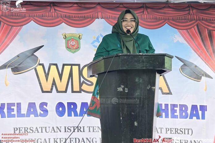 Samarinda, Satu Indonesia – Ketua Tim Penggerak (TP) Pemberdayaan Kesejahteraan Keluarga (PKK) Kota Samarinda, Hj Rinda Wahyuni Andi Harun melakukan wisuda terhadap istri-istri tentara yang tergabung dalam Persatuan Istri Tentara (Kerabat Persit) Kartika Chandra Kirana Kelurahan Sungai Keledang, Samarinda Seberang, Kamis (13/2/2025) siang.