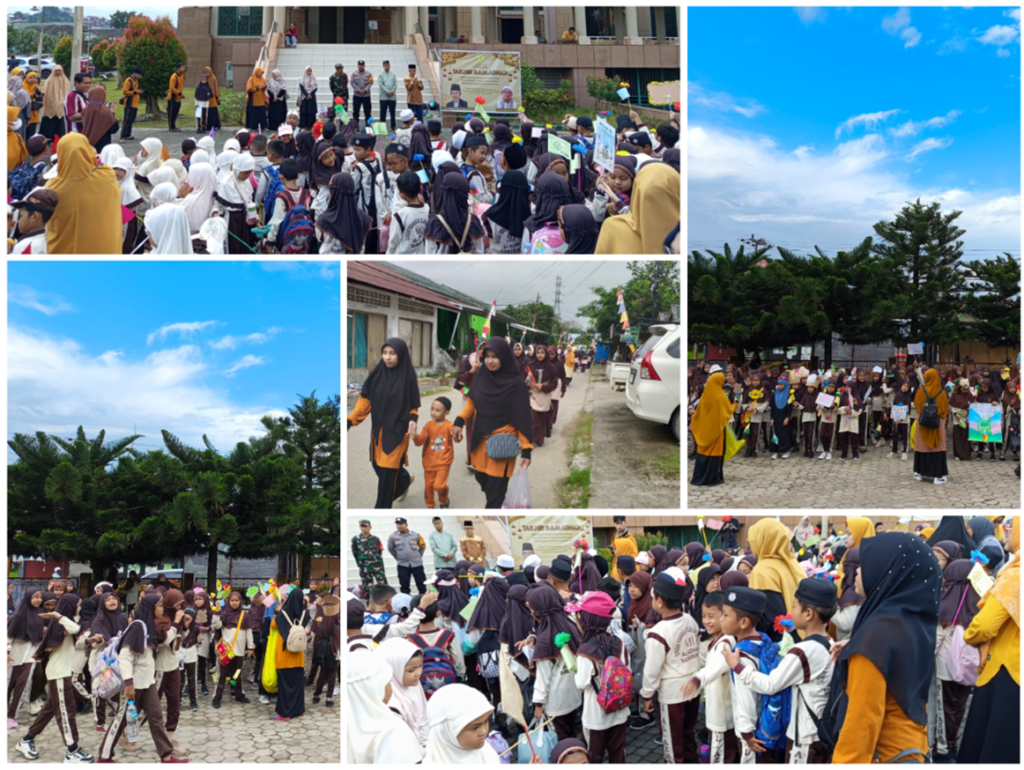Peserta Tarhib tak lupa membagi-bagikan souvenir kepada khalayak yang ditemui sepanjang perjalanan. Setiap bingkisan kecil tersebut berisikan Jadwal Imsakiyah Ramadhan 1446 H, tasbih serta makanan kecil. Masyarakat menyambut kegiatan ini dengan tangan terbuka dan penuh senyum. Semua ikut merasakan kegembiraan penyambutan Ramadhan 1446 H kali ini.