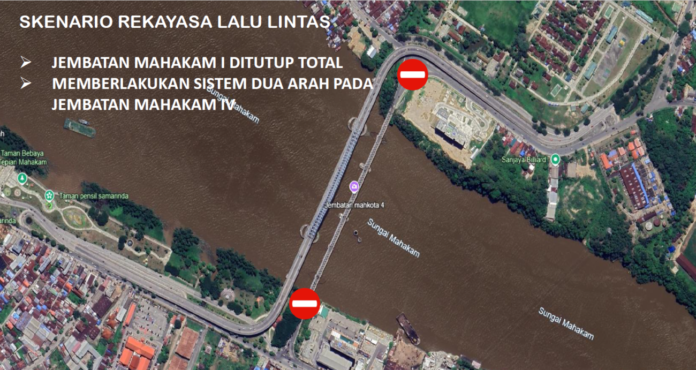 Samarinda, Satu Indonesia – Sebagaimana diketahui, Dinas Perhubungan (Dishub) Provinsi Kalimantan Timur (Kaltim) bersama Satuan Lalu Lintas (Satlantas) Polresta Samarinda dan Dishub Kota Samarinda tengah mempersiapkan rekayasa lalu lintas guna mendukung kelancaran arus kendaraan menjelang penutupan sementara Jembatan Mahakam I.
