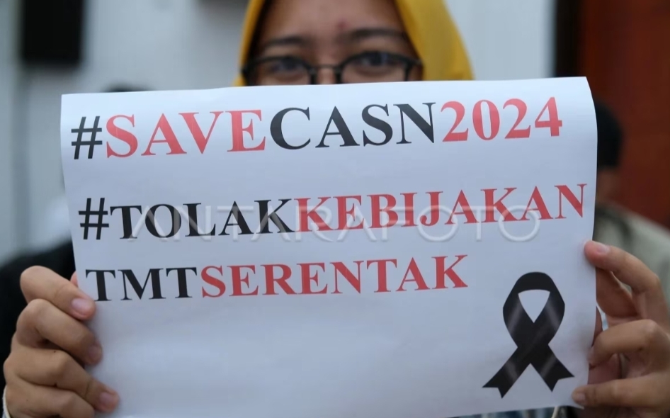 Unjuk rasa tersebut merupakan aksi tolak penundaan pengangkatan Calon Aparatur Sipil Negara (CASN) dan Pegawai Pemerintah Dengan Perjanjian Kerja (PPPK) 2024.