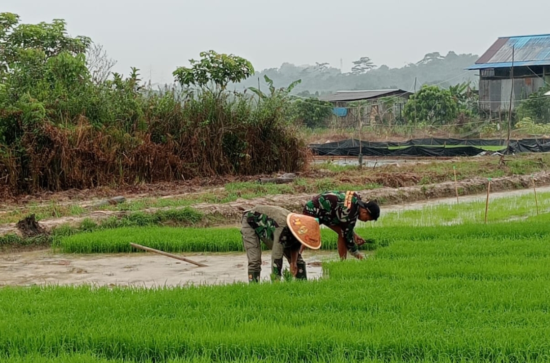 Upaya ini dapat terlihat dari soliditas puluhan anggota Satgas TMMD yang dibawah koordinasi Kapten Arm Agus Sajoko bersama warga melakukan penanaman padi seluas 2 Hektare.