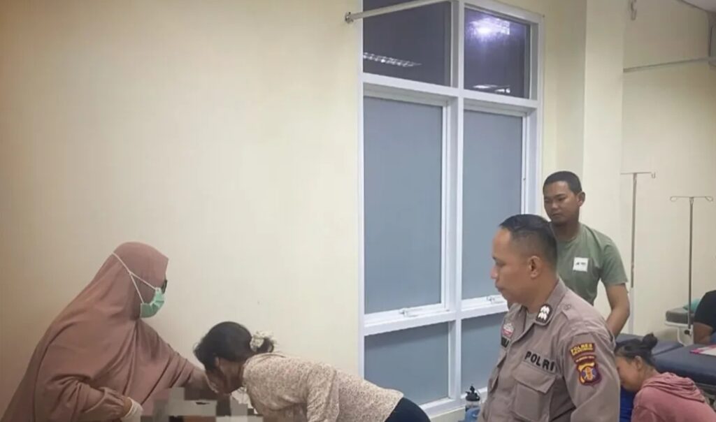 Pihak kepolisian bersama pihak keluarga saat berupaya memberikan pertolongan terhadap korban ke UPTD Puskesmas Muara Jawa, Kab. Kutai Kartanegara (Kukar), Jum’at (21/3/2025) | Instagram/Polres Kutai Kertanegara.