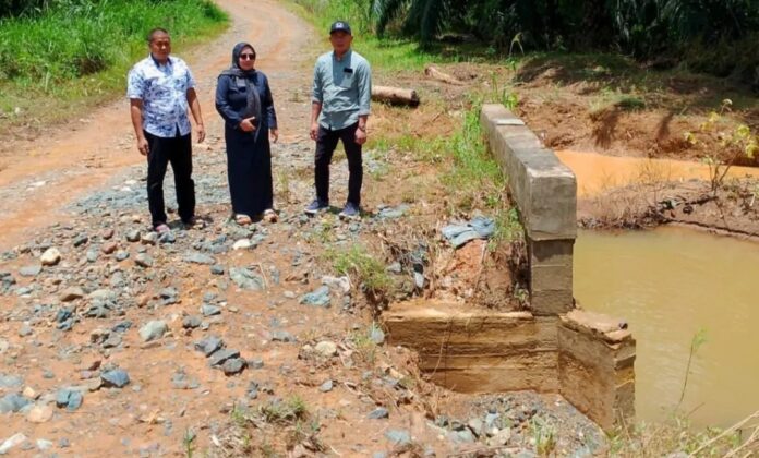 Saat meninjau langsung tiga jembatan, yaitu jembatan Sondom, jembatan Sungai Luan dan jembatan Sungai Kemonsi, Kedua anggota DPRD ini didampingi Kepala Desa Rantau Bintungan, Muslih.