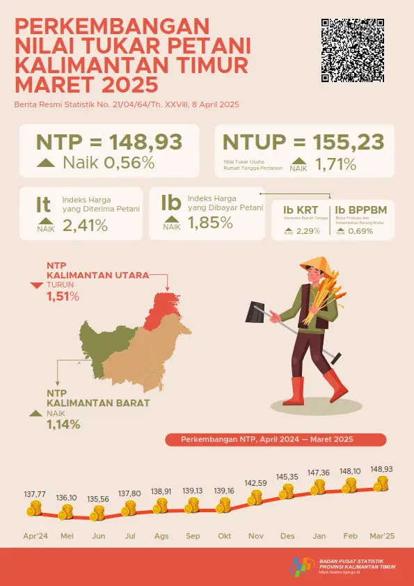 Samarinda, Satu Indonesia – Kenaikan Nilai Tukar Petani (NTP) di Kalimantan Timur pada Maret 2025 sebesar 0,56 persen telah membawa dampak positif bagi petani di provinsi tersebut. Dengan NTP yang mencapai 148,93, petani di Kalimantan Timur diharapkan akan semakin makmur.