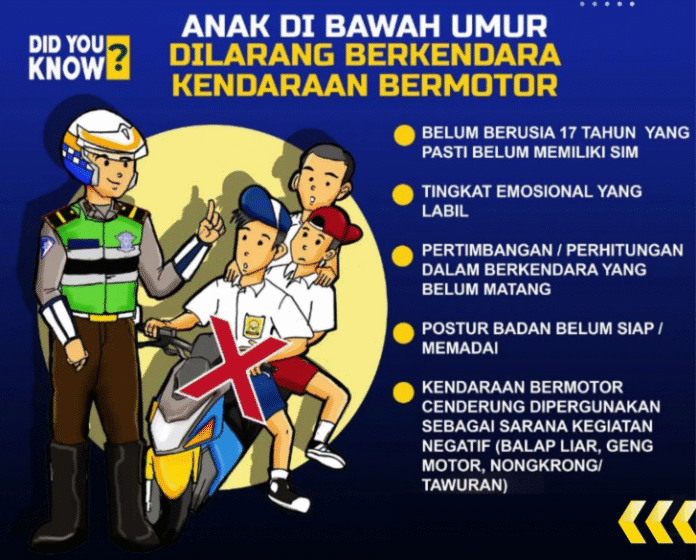 Ia menekankan bahwa orang tua harus mengambil peran aktif dalam mencegah anak-anak mereka mengendarai kendaraan, terlebih jika belum memenuhi syarat usia dan kelengkapan hukum.