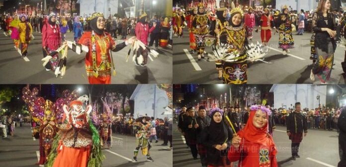 Tarian kolosal yang dibawakan ratusan penari menjadi pembuka megah parade budaya ini, menggambarkan perjalanan sejarah Kota Surabaya. Setelah itu, satu per satu perwakilan dari kota-kota di Indonesia tampil mempesona dengan kekayaan budaya masing-masing, termasuk tentunya kontingen kota Samarinda yang tampil memikat.