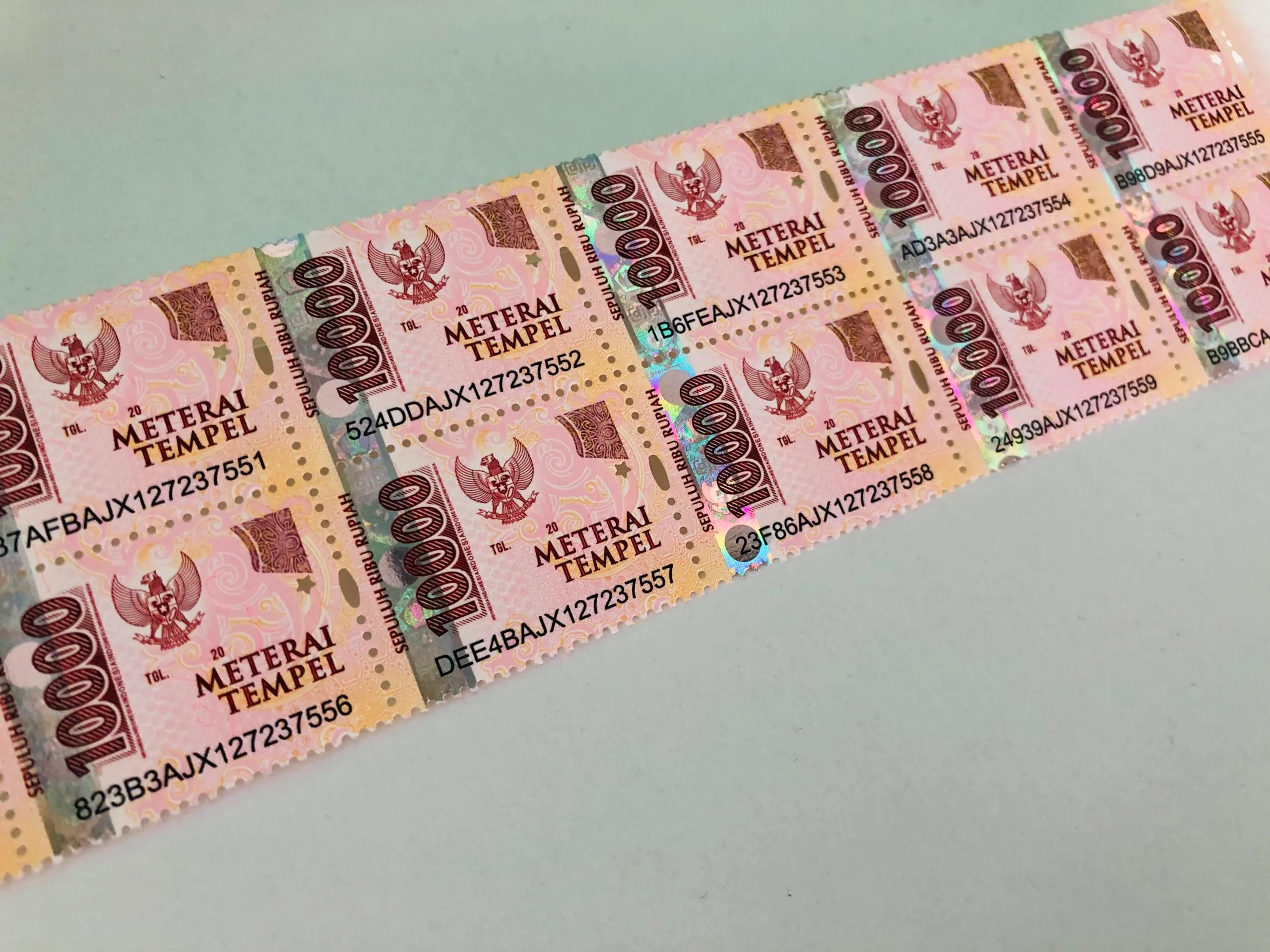 Selain itu ditemukan pula 225 lembar materai siap edar; 119 lembar cetakan materai; 4 ring berisi 2.000 lembar materai siap edar; dan 112 lembar materai tambahan.