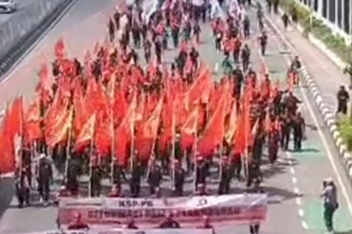 Jakarta, Satu Indonesia – Aksi buruh telah berlangsung hampir dua jam di depan Gedung DPR/MPR, Senayan, Jakarta Pusat pada Kamis (28/8/2025) siang.