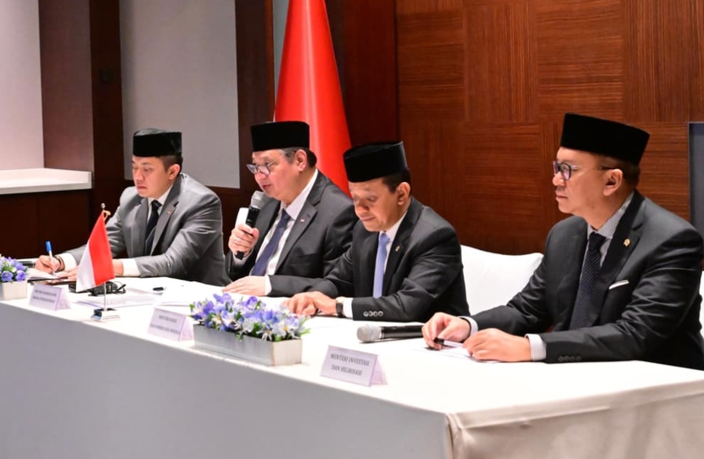 Turut mendampingi Menko Airlangga dalam kesempatan tersebut diantaranya yaitu Menteri Energi dan Sumber Daya Mineral Bahlil Lahadalia Menteri Investasi dan Hilirisasi/Kepala Badan Koordinasi Penanaman Modal Rosan Perkasa Roeslani, dan Sekretaris Kabinet, Teddy Indra Wijaya. Adapun sejumlah Menteri yang turut hadir secara daring yaitu Menteri Sekretaris Negara Prasetyo Hadi, Menteri Keuangan Purbaya Yudhi Sadewa, Menteri Dalam Negeri Tito Karnavian, Menteri Pendayagunaan Aparatur Negara dan Reformasi Birokrasi Rini Widyantini, serta Menteri Ketenagakerjaan Yassierli.
