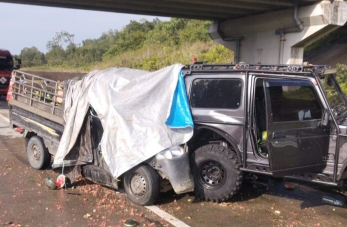 Insiden yang melibatkan kendaraan pickup dan sebuah mobil jeep pada Jum’at (17/4/2026) pagi ini menyebabkan satu orang meninggal dunia.